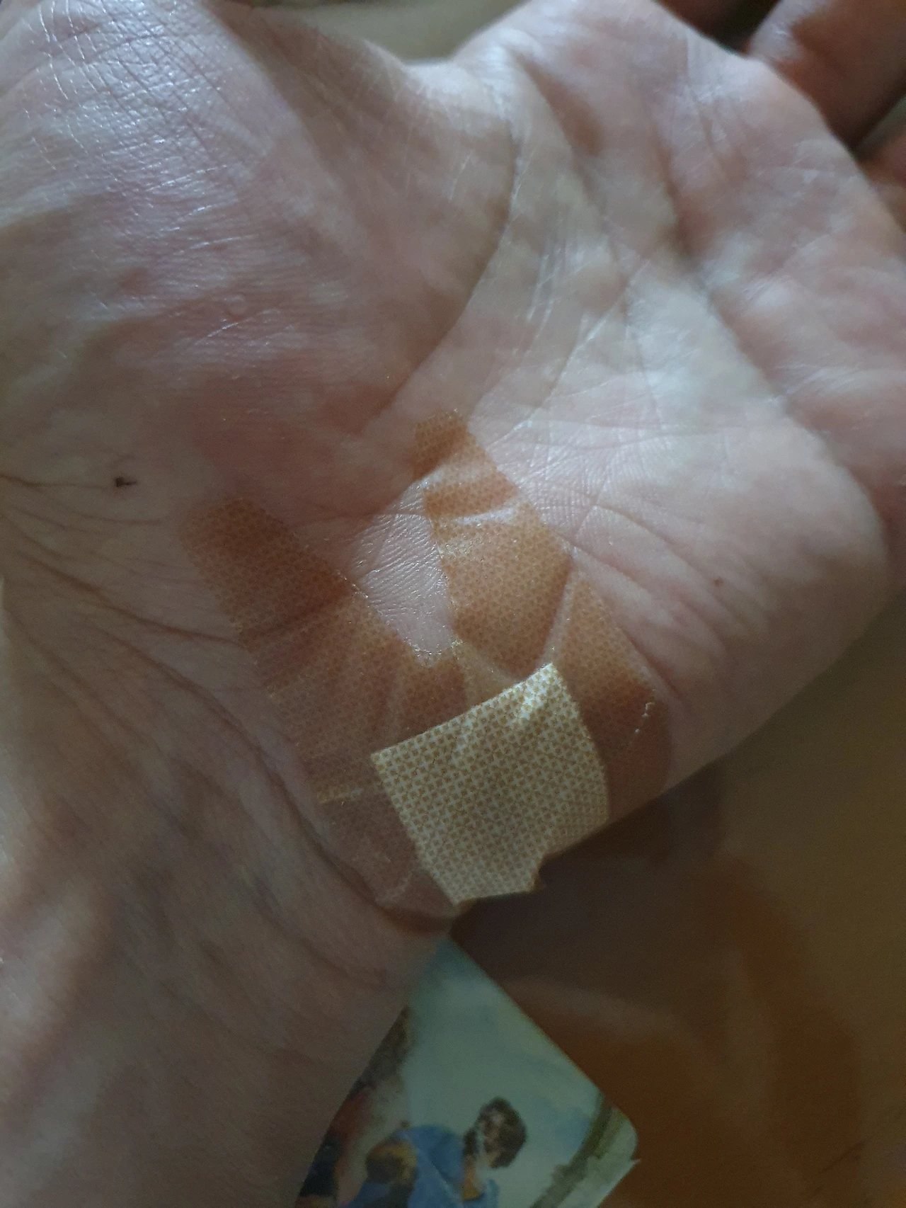 나도 새벽에 빙판길에서 완전히 넘어져서 손바닥에 상처가 나고