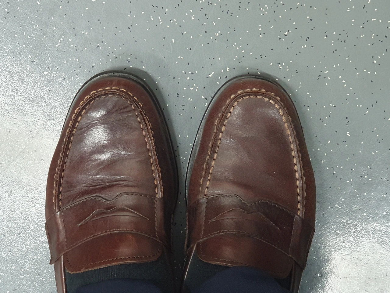 응급처치로 신문지와 나무젓가락을 구두 안에 넣었다