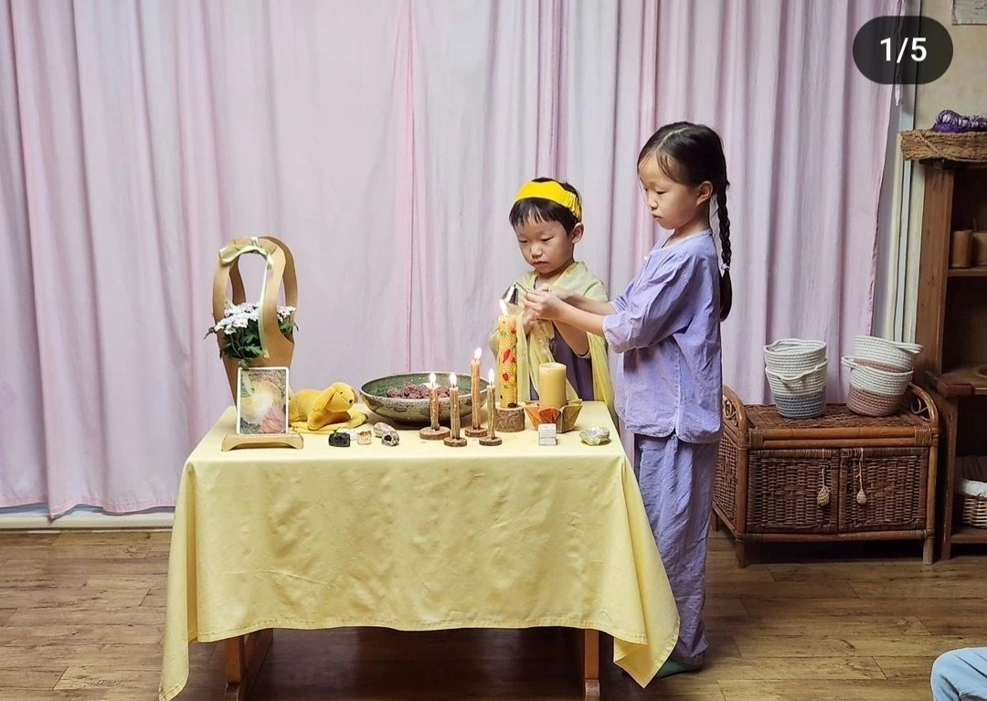 매달 한 번씩 부모 모임을 통해서 발도르프 교육 강사님을 모시고 수업도 듣고 아이들에 대한 이야기도 나누고, 7세의 경우 부모님이 생일파티에 직접 참여해서 선물도 주고 편지도 읽어줍니다.