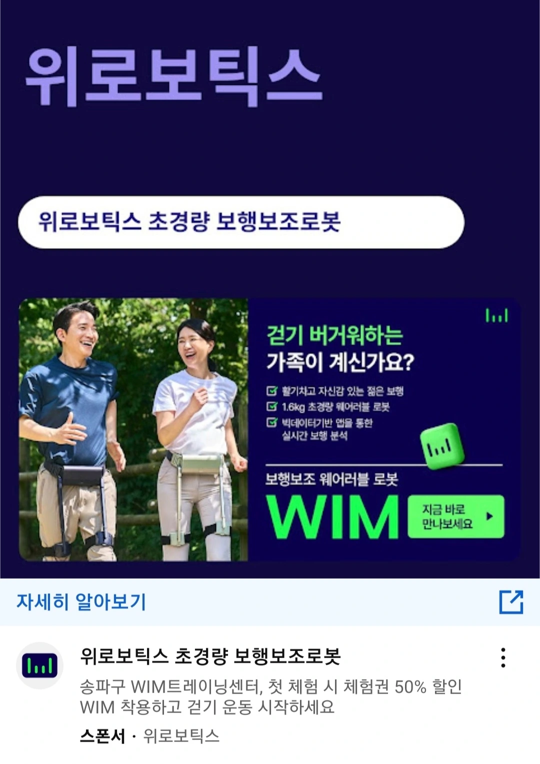 그런데 이제 로봇을 착용하면 보행에 도움을 받을 수 있을 것으로 보입니다. 아직 가격이 비싸서 쉽게 구하기는 어렵겠지만요.