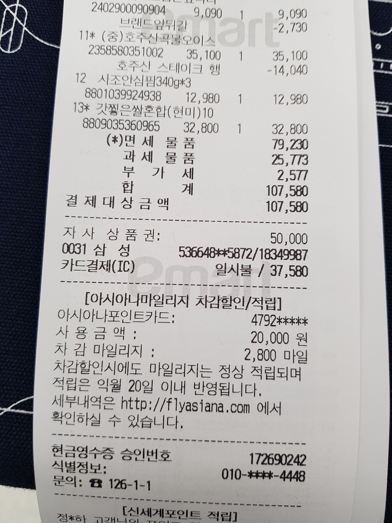아시아나 마일리지 비밀번호를 설정하고 이마트 고객센터로 직접 찾아가서 기존 결제 내역을 취소하고 재결제를 해야 했다.