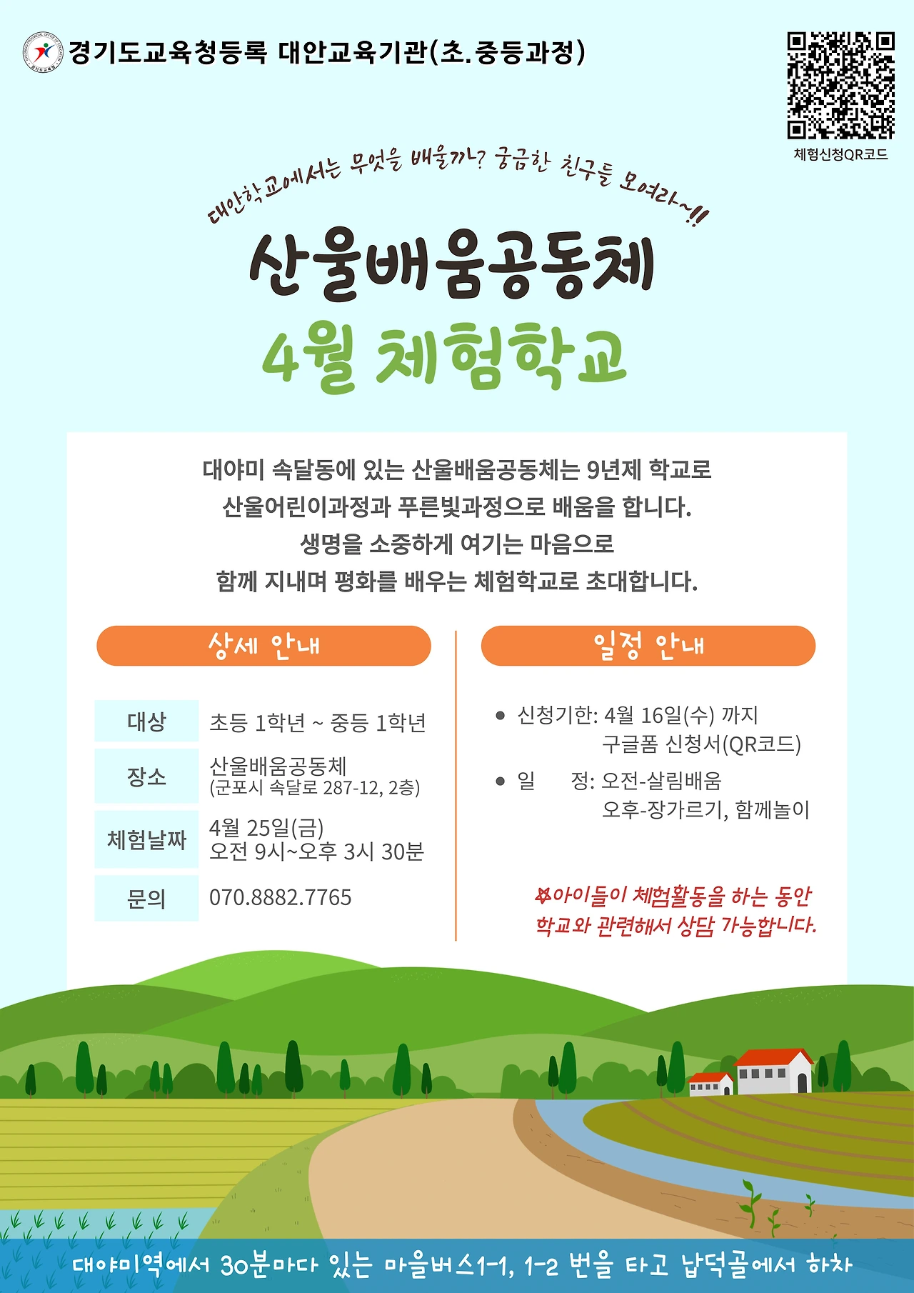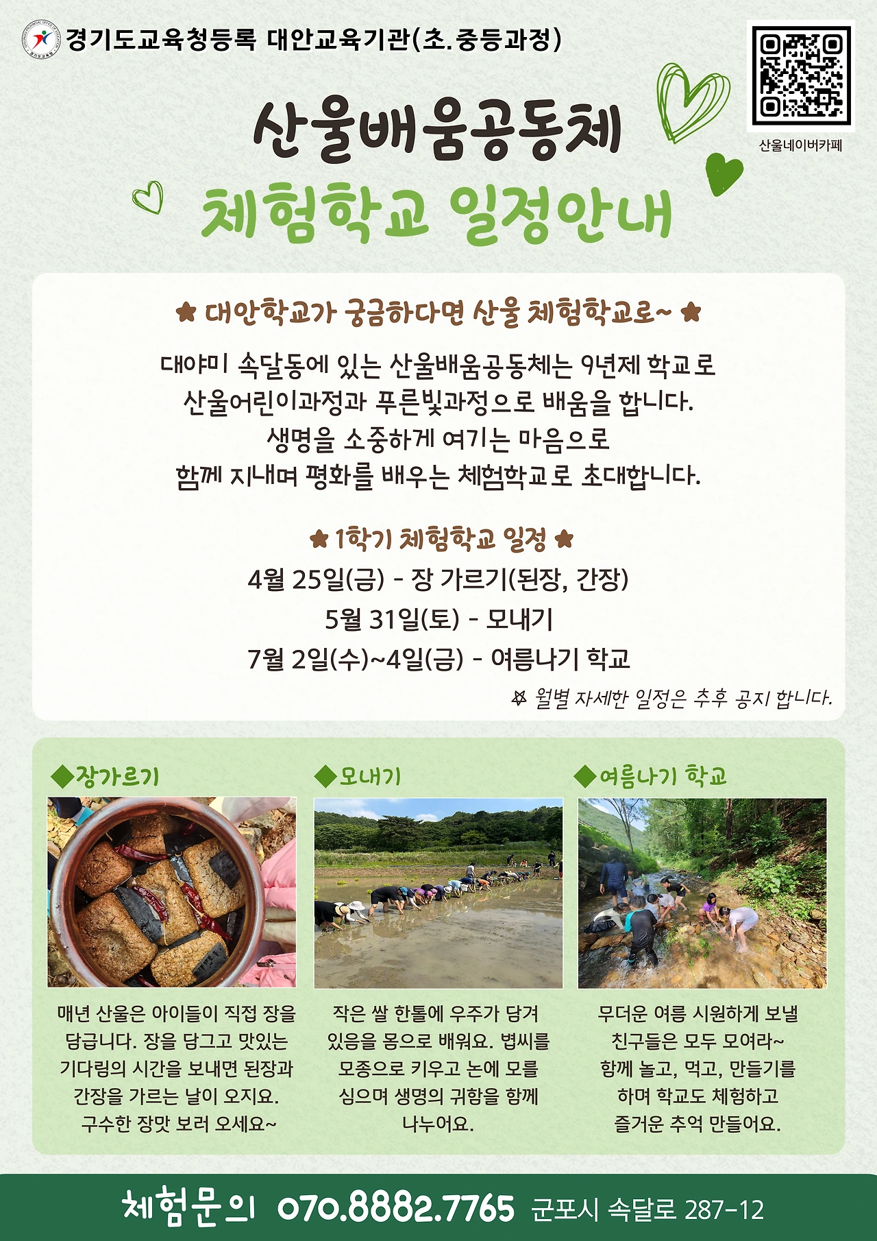 군포시의 유일한 초, 중등 대안학교인 산울배움공동체에서