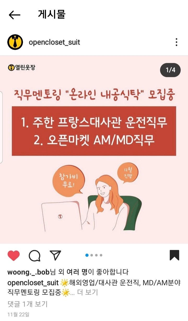 시간이 흐르고 항공화물터미널, 방글라데시 대사관 그리고 프랑스 대사관으로 여러 번 이직을 한 상태였는데 어느 날 열린 옷장 지기 님으로부터 연락이 왔다