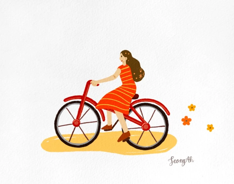 마지막으로 빨간 자전거를 타고 여행하는 저를 그렸어요.