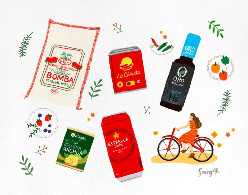 음식 재료를 그리면서 스페인을 여행하는 느낌을 담아서 그려봤어요.