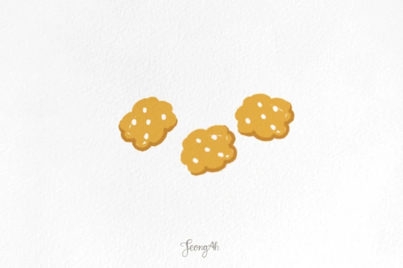 커피와 함께 먹을 비스킷은 이렇게 그렸어요. 네모 모양을 그려서 외곽은 울퉁불퉁하게 한번 더 그려줬어요.