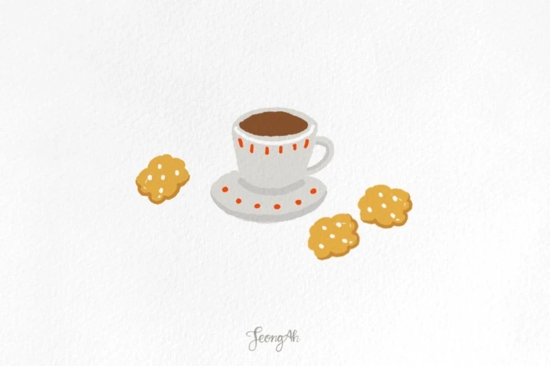 커피와 비스킷을 그려봤어요. 커피잔 그리는 법 쉬워요~! >.<