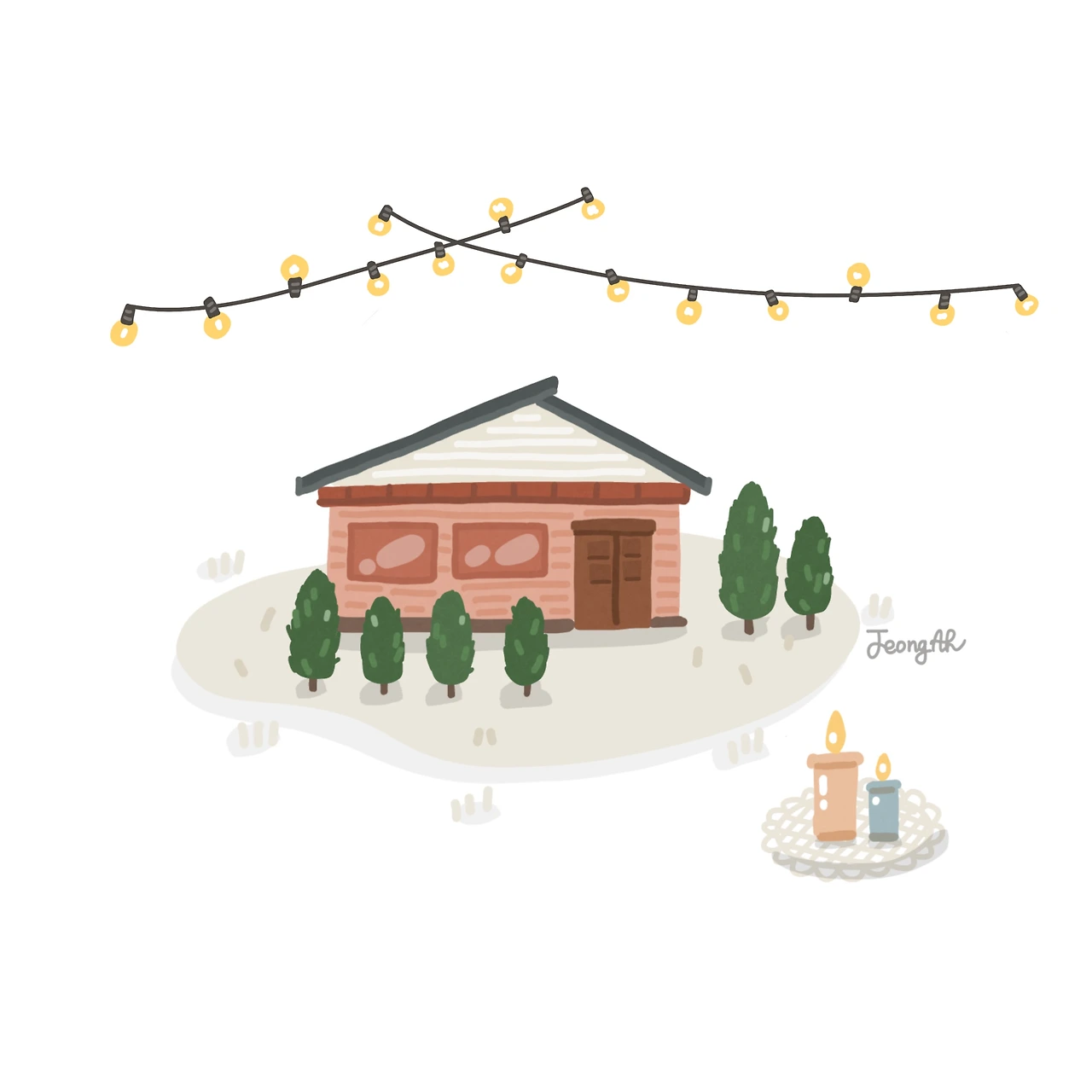 아이패드 드로잉으로 그린 카페 일러스트! 가족과 함께 하는 소중한 시간을 담아 그렸어요.