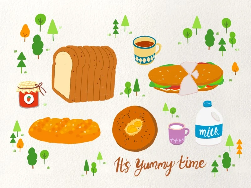 맛있는 빵들을 제 스타일로 그려보았어요. 봐주셔서 감사합니다!