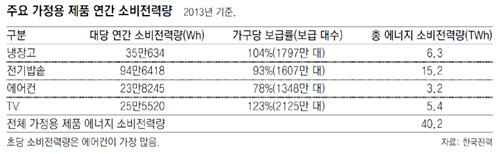 2. 10년 전 제품을 최신 것으로 교체하면 소비전력량(=전기요금)이 줄어드니, 가정에서 빨리 고효율의 새 제품으로 전환하는 것이 에너지 수급 정책상 중요하다.