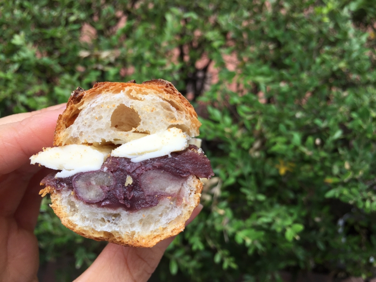 입가심을 했으니 다음 빵을 먹을 차례. 만들자마자 먹는 게 가장 맛있는 미니 크림치즈 바게트 혹은 생크림 치아바타를 꺼낸다. 느끼한 걸 즐기지 않는 내 입에도 과하지 않아 갈 때마다 꼭 하나씩 주문하게 된다. 사워도우에 익숙지 않은 이들을 위해 시작하셨다는 이 메뉴들은 생긴 것만 보면 '크림 맛으로 먹는 거 아닌가?'라는 생각을 할 수도 있는데, 크림을 뚫고 나오는 빵 맛을 한 번 느끼고 나면 위장이 하나인 게 아쉬울 거다. 커다란 바게트에서는 느낄 수 없는 바삭함과 고소함이 있고 셰프님의 고민이 담겨 한층 더 섬세한 맛을 뽐내는 부재료가 매력적이다.