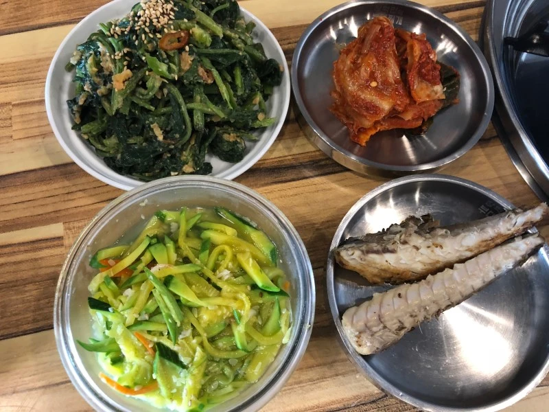 어떤 날은 소고기가 들어간 미역국에 빨간 두부조림, 어떤 날은 도톰한 무우가 살캉하게 씹힐 정도로 푹 지져 낸 고등어조림. 또 어떤 날은 중국 당면을 듬뿍 넣은 국물 자작한 소불고기.