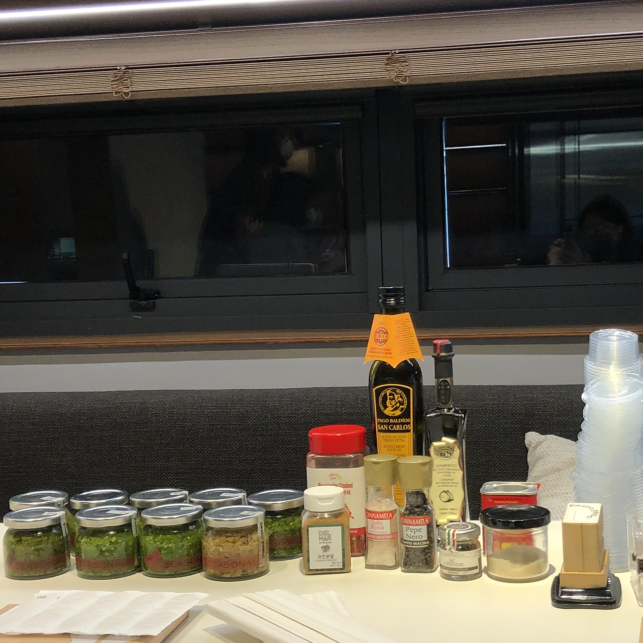아이스 브레이킹 후에는 사장님이 준비해 오신 각종 페스토를 맛보며 감각을 일깨웠다. 흔히 페스토하면 바질을 많이 떠올릴텐데, 바질은 기본이고 명이나물, 쑥, 깻순, 완두&아스파라거스, 표고 등 다양한 변주가 돋보였다. 10개 정도 되는 페스토를 맛보며 테이스팅 노트를 적고 이를 사람들과 돌려 보았는데, 같은 소스를 두고 서로 다른 느낌을 받은 것과 같은 맛이라도 각자의 표현법이 달라 흥미로웠다.