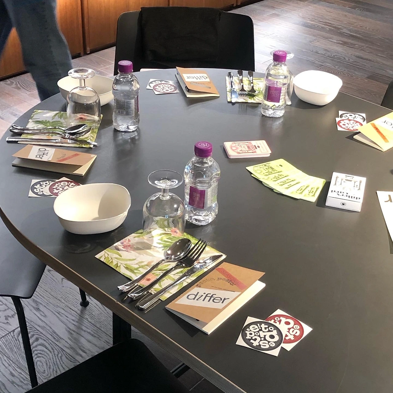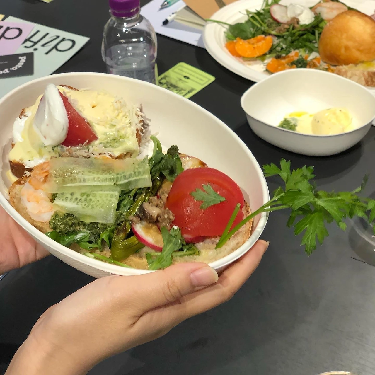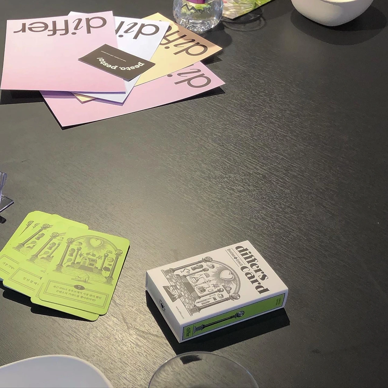 이 날의 하이라이트는 플레이팅! differs card라는 질문 카드를 한 장씩 뽑은 다음, 그에 대한 답변을 플레이트에 담아내는 거였다. 식재료는 페스토 페스토의 페스토들과 맛있기로 소문난 빵집의 빵, 과일과 치즈, 채소, 각종 소스가 준비되었는데 "예상치 못한 조합"이라는 클래스 주제에 맞게 자유롭게 섞어 보는 게 관건이었다. (뭘 섞어도 맛있을 수 있도록 만들었다며 페스토 대장님께서 용기를 북돋워주셨다)