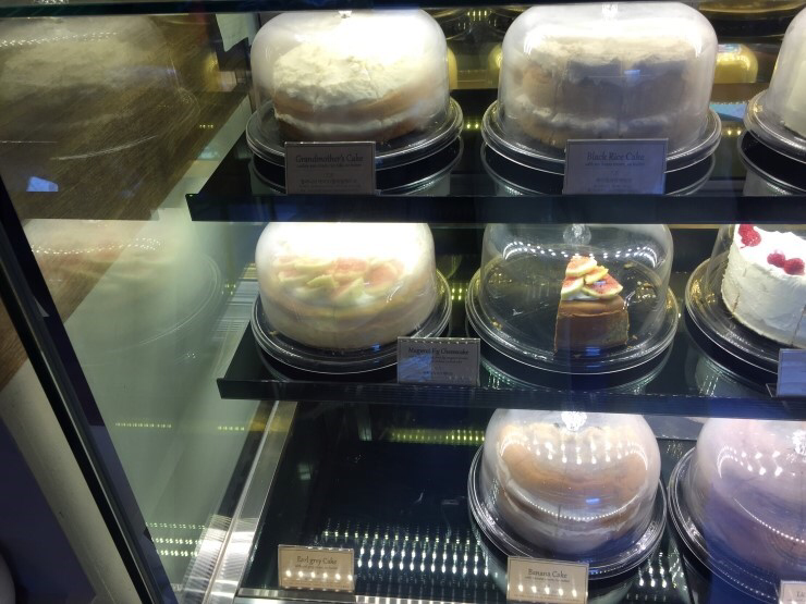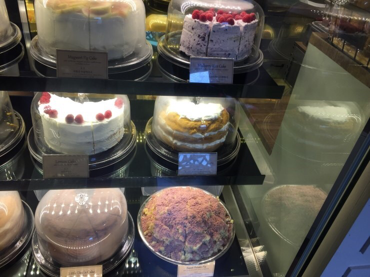 냉장고를 가득 채운 커다란 사이즈의 케이크들을 보는 순간 깊은 고뇌가 시작되었다. 대표 메뉴인 할머니 케이크도 좋고 고소함이 일품인 콩크림 케이크도 먹고 싶고. 향긋한 당근 케익과 독보적인 쌉싸름함을 자랑하는 쑥쌀케이크도 포기할 수 없는데- 가장 효과적으로 당충전이 될 것 같은 초콜릿 케이크(데빌스 케이크)도 맛깔나 보인다. 그뿐 만이 아니라 한눈에 봐도 꾸덕한 치즈케이크, 독특한 비주얼의 고구마 파이, 제철 과일이 올라간 케이크 등 시트 케이크 이외에도 다양한 케익이 있어 쇼케이스 앞을 떠나기 쉽지 않았다.
