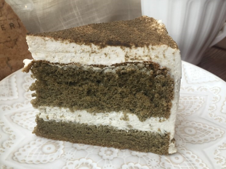 예쁘게 사진을 찍고 크게 한 포크 떠 보려는데 어쩐지 쉽지 않다. 시럽을 머금어 촉촉한, 카스테라 느낌의 일반적인 시트와 달리 키에리의 케이크는 무언가 탄력이 느껴지는 빵이다. 시럽도 거의 발라져 있지 않아 누군가는 뻣뻣하다고 표현하기도 하는 케이크. 쑥 케이크의 경우에는 쌉싸름한 향과 쑥 섬유질 때문에 식감이 더 거칠게 느껴지기도 한다.