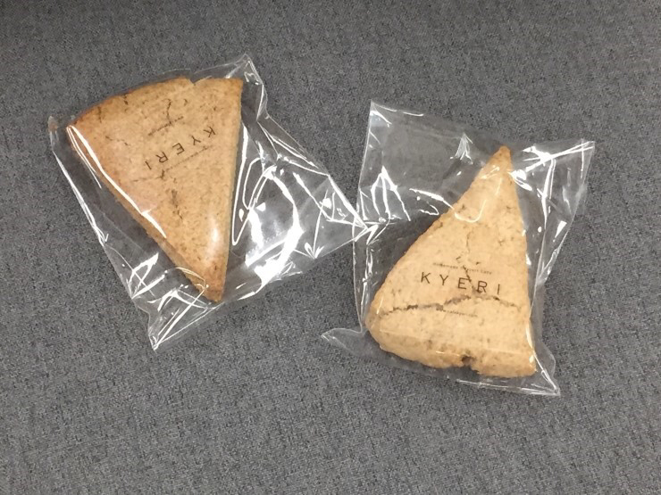 일반적으로 스콘이라 하면 버터 듬뿍 넣어 비스킷처럼 바삭하면서도 속은 촉촉한 타입이거나 생크림으로 만들어 부드럽고 묵직한 타입을 떠올리지만, 키에리는 스콘 또한 "키에리스럽다".
