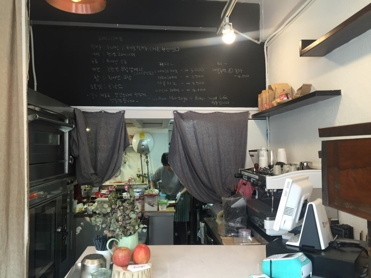 문을 열자마자 보이는 건 6명이 앉을 수 있을까 싶은 테이블 하나와 이미 예약으로 텅 빈 트레이들. 할머니댁에서 본 듯한 오래된 서랍장 두어개. 그리고 커튼 너머 아기자기한 주방이 전부였다. 빵과 사장님, 몇몇 손님만을 위한 작지만 충실한 공간.