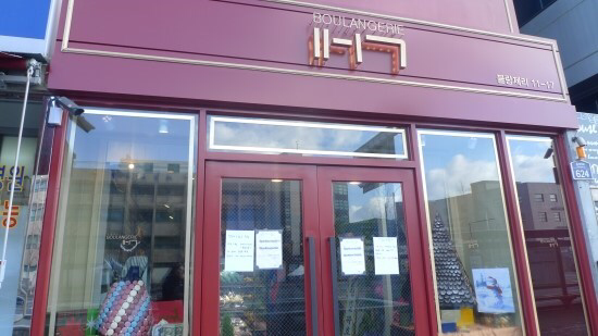 좁은 빵집을 가득 채운 인파와 텅 빈 트레이에 익숙해지던 즈음, 블랑제리 11-17는 보금자리를 옮겼다. 성내동 11-17번지가 아닌, 천호역과 가까운 대로변으로. 성내동 빵집 11-17의 시즌 2가 시작된 순간이었다. 새로운 매장은 기존과 사뭇 달랐다. 그리 넓은 외관은 아니었으나 빨간 차양이 멀리서도 눈에 띄었고, 금색으로 쓰인 글자가 멋스러웠다. 기다란 매장은 복층으로 이루어져 예전과 달리 먹고 갈 수 있는 테이블도 생겼으며, 쉐프님의 감각이 고스란히 느껴지는 세련된 듯, 투박한 인테리어가 정겨웠다.
