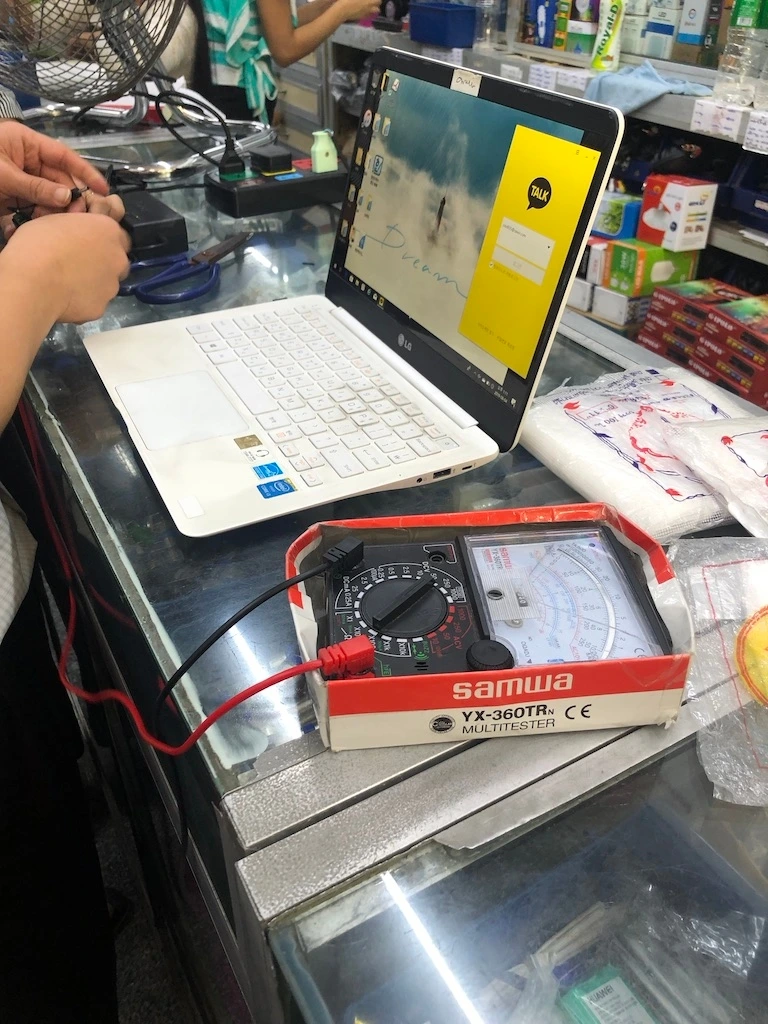중심 거리로 향했다. 사람들로 북적였다. 평소 인파가 많은 곳을 꺼리지만 여기는 모든 것이 아직 신기한 미얀마 아닌가. 복잡해도 좋았다. 사람들의 패션, 표정, 걸음걸이까지도 신선하게 다가왔다. 늘 그렇듯 발길이 가는 대로 움직였다. 약국 거리로 보이는 곳을 지나니 전자 상가 거리로 짐작되는 장소가 나왔다. 그중 LG 마크가 보이는 곳으로 들어갔다. 자신 없는 표정으로 노트북 충전기를 사고 싶다고 이야기했더니 직원은 난색을 보였다. 터덜터덜 나왔지만 왠지 자신감이 조금 붙었다. 두 번째 가게에서는 핸드폰으로 노트북 기종을 보여주며 이 노트북의 충전기를 사고 싶다고 했고, 여러 직원의 손을 거쳐 드디어 기술자로 보이는 전문가와 이야기를 할 수 있었다. 같은 회사의 제품은 아니었지만 충전 기능을 할 수 있다며 물건을 보여줬다. 역시, 뜻이 있는 곳에 길이 있나니! 기쁜 마음에 옳다구나, 구매하려는 찰나 갑자기 날카로운 이성이 내 머리를 스쳤으니, 나 같은 기계치가 갖추어야 할 미덕, 그것은 바로 확인이었다. 숙소에 노트북이 있는데 직접 가져와 테스트를 해봐도 되겠냐고 물었다. 그는 흔쾌히 수락했다. 기쁜 마음에 쭐레쭐레 숙소로 향한 나는 금세 노트북과 함께 나타났다.