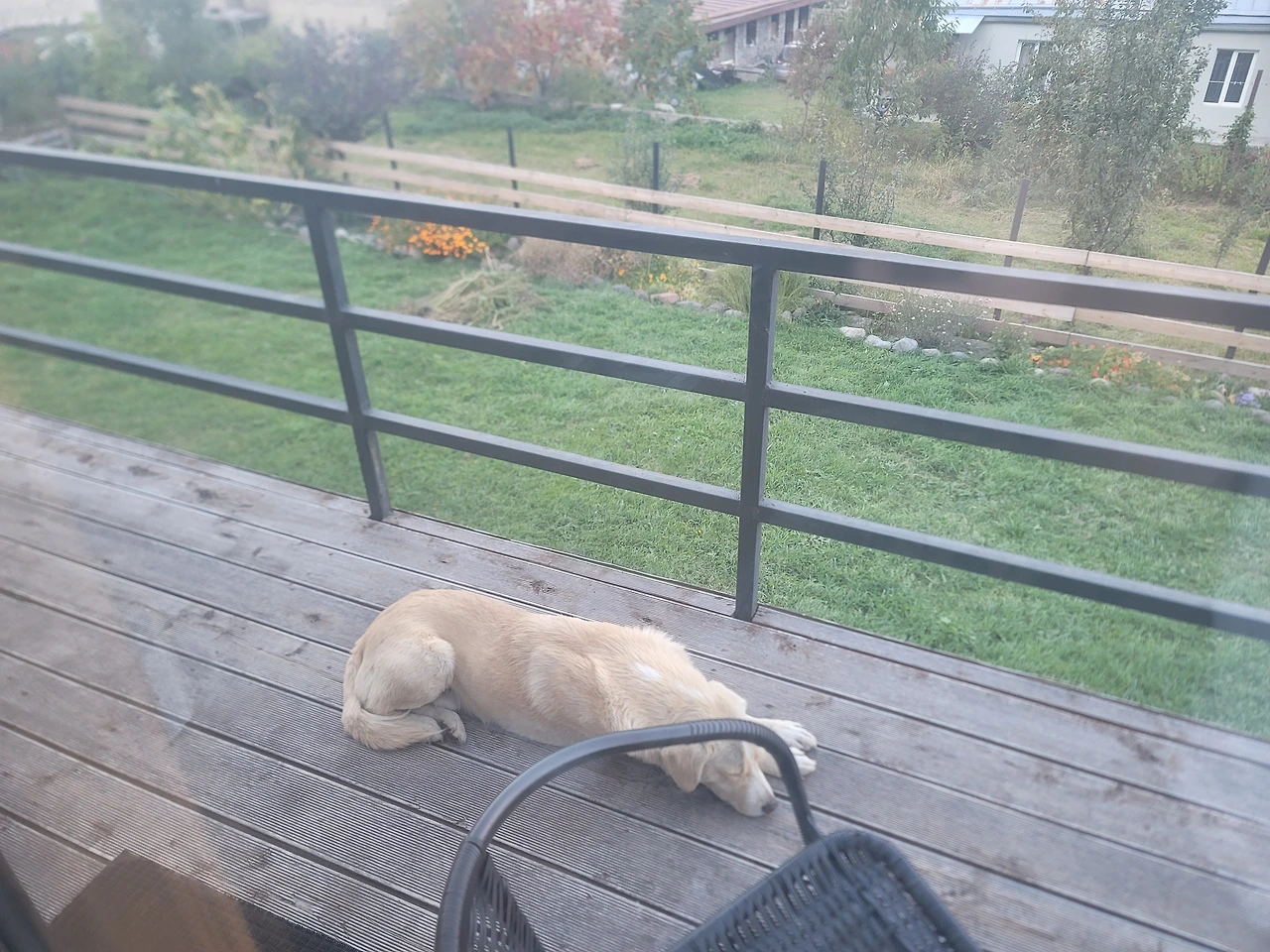 일출을 보기 위해 커튼을 걷었는데, 숙소 입구에 이 친구가 누워 자고 있었다.