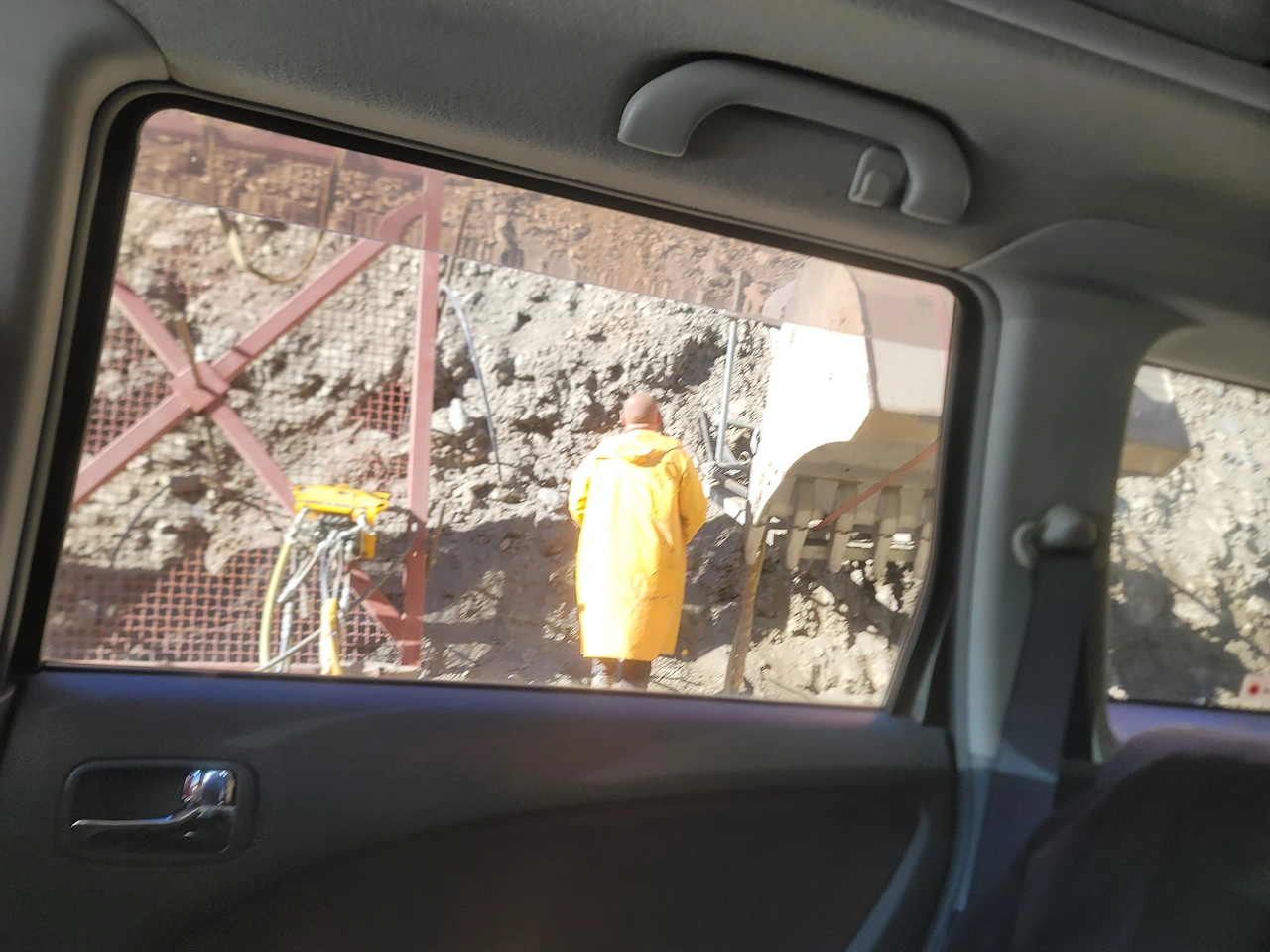 굴삭기가 잠시 길을 막아 몇 분 기다렸지만, 그게 대수인가.