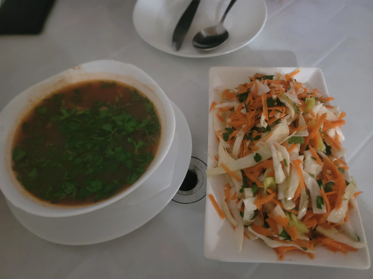 고수 듬뿍 카르초와 양배추 당근 샐러드