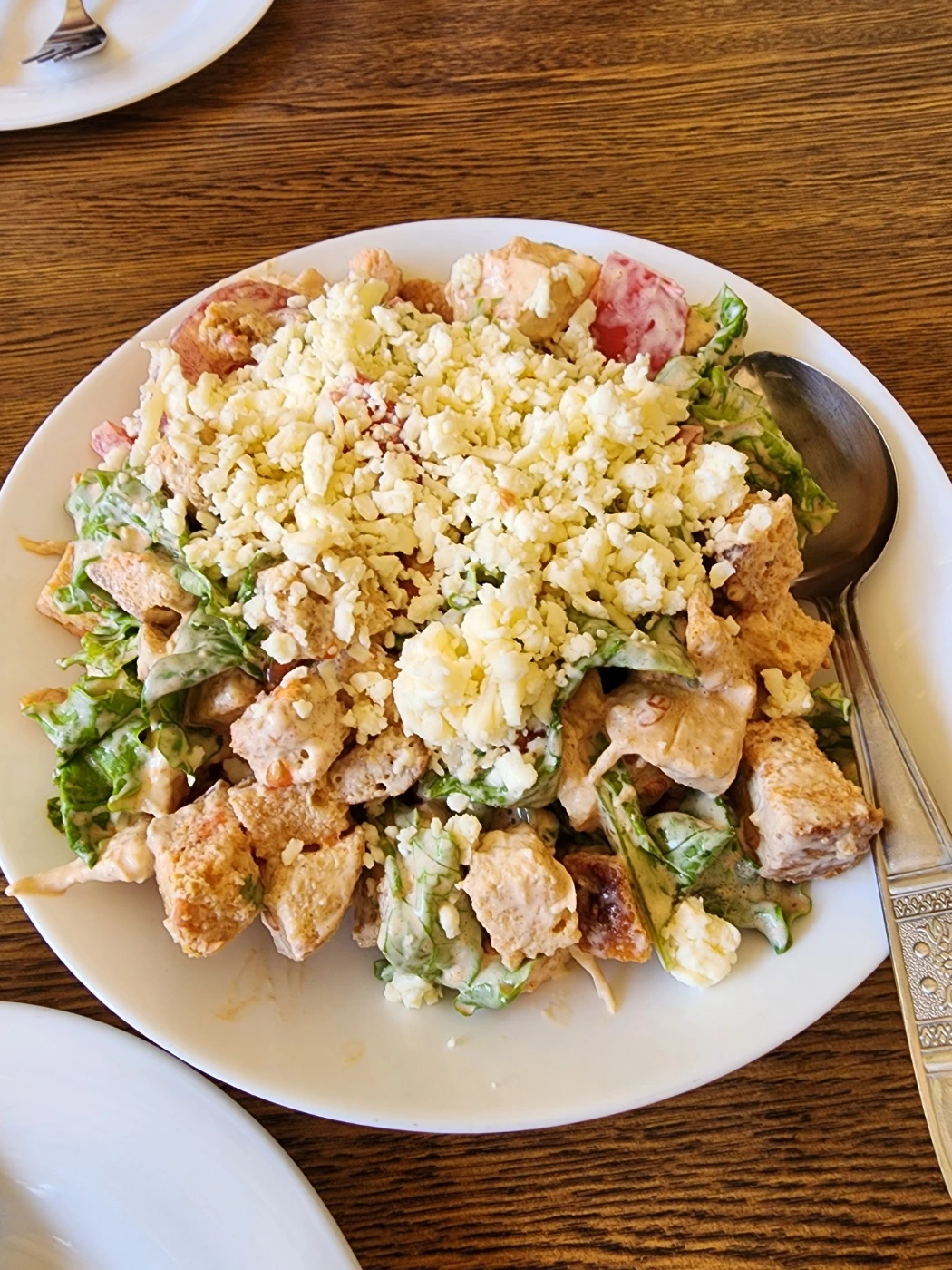 토마토와 오이 샐러드만 몇 번째인지, 지겨워서 시저 샐러드를 시켰다.