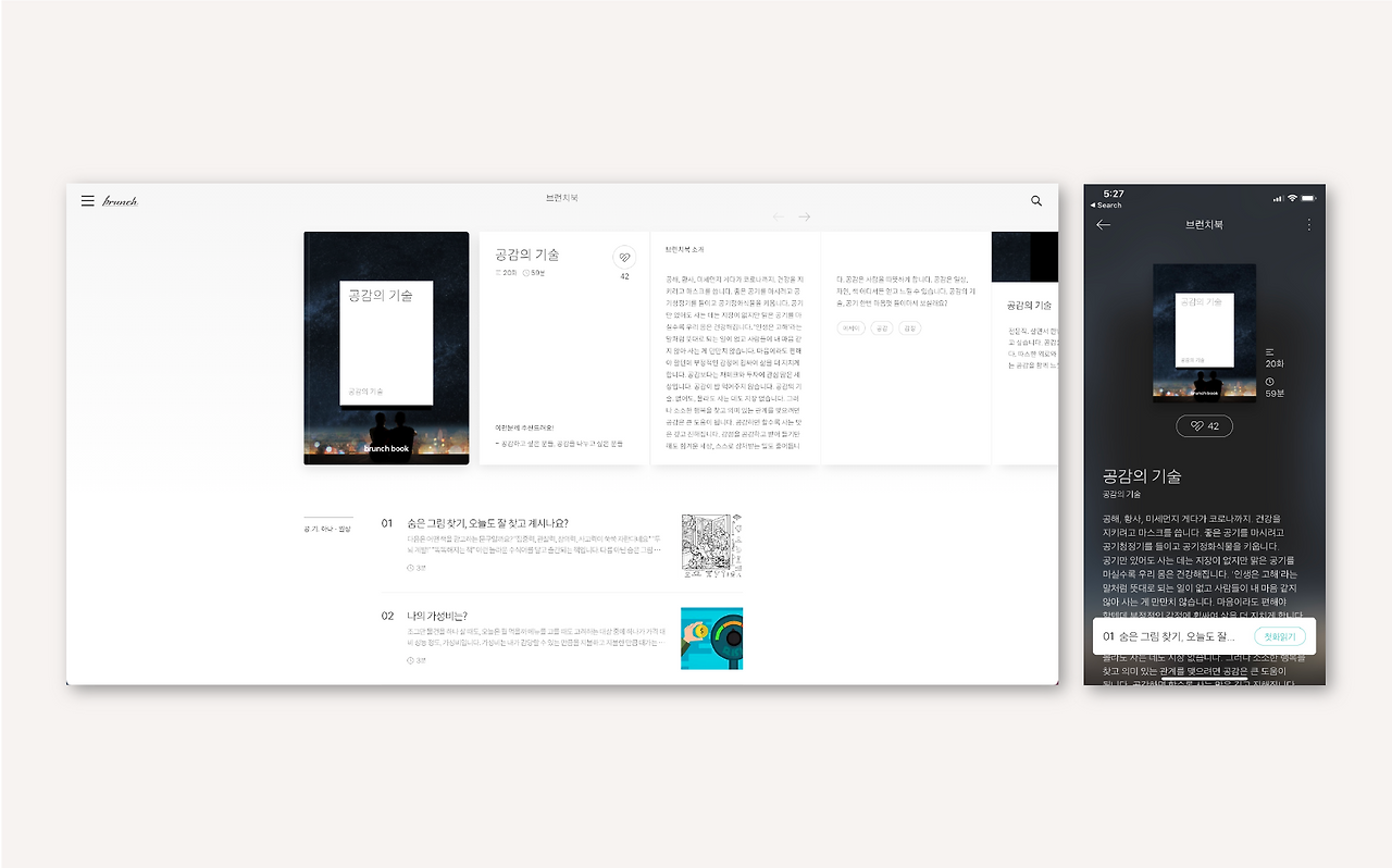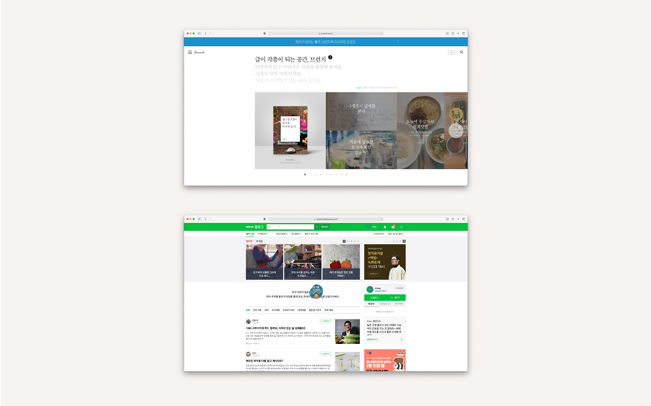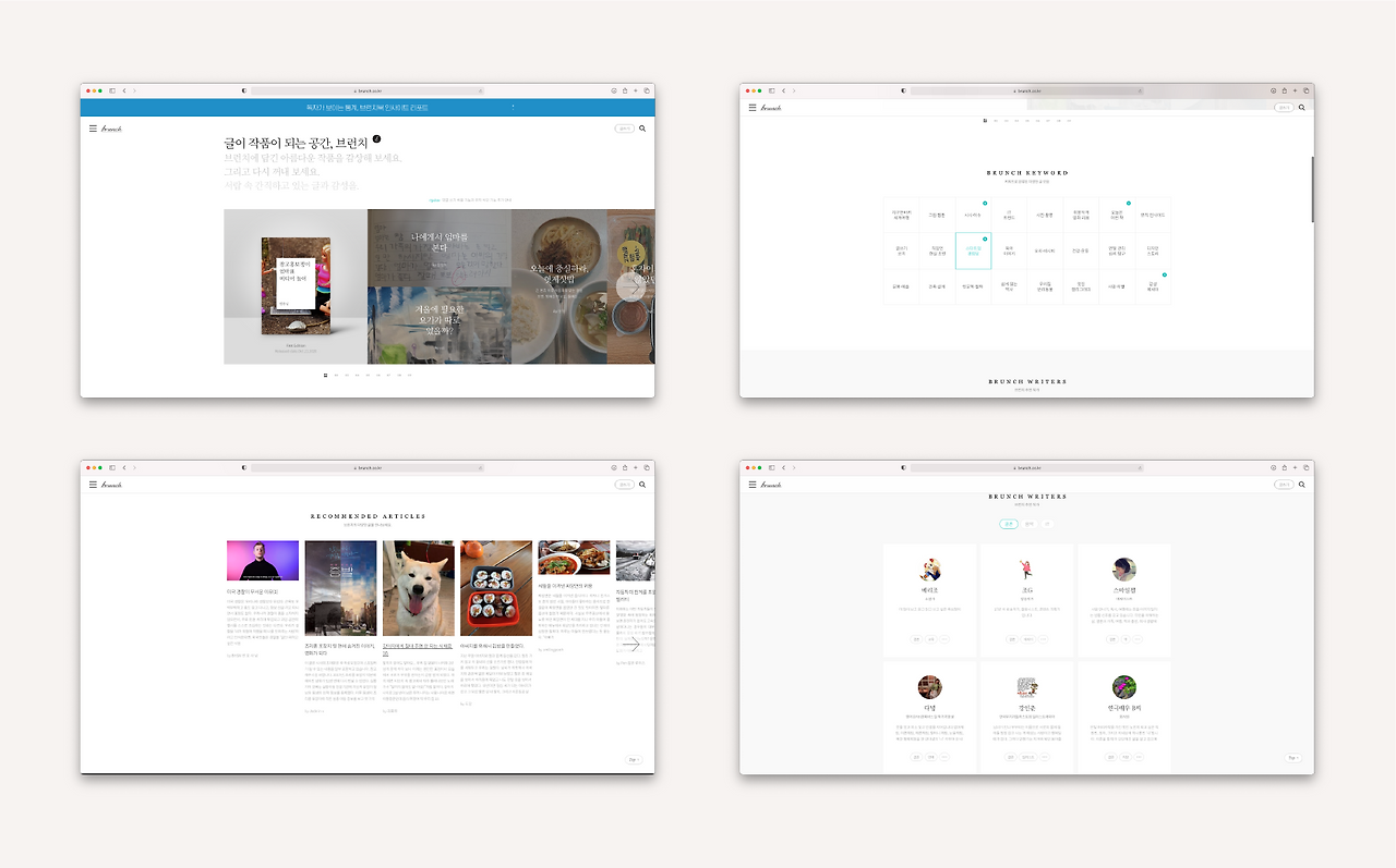 이렇듯 브런치는 기존 서비스들과 다른 새로운 사용자 경험을 제공하며