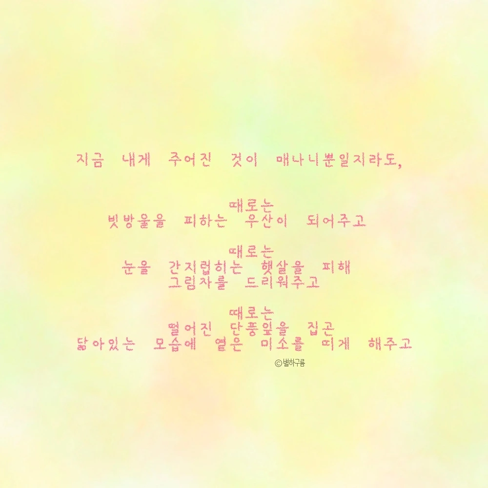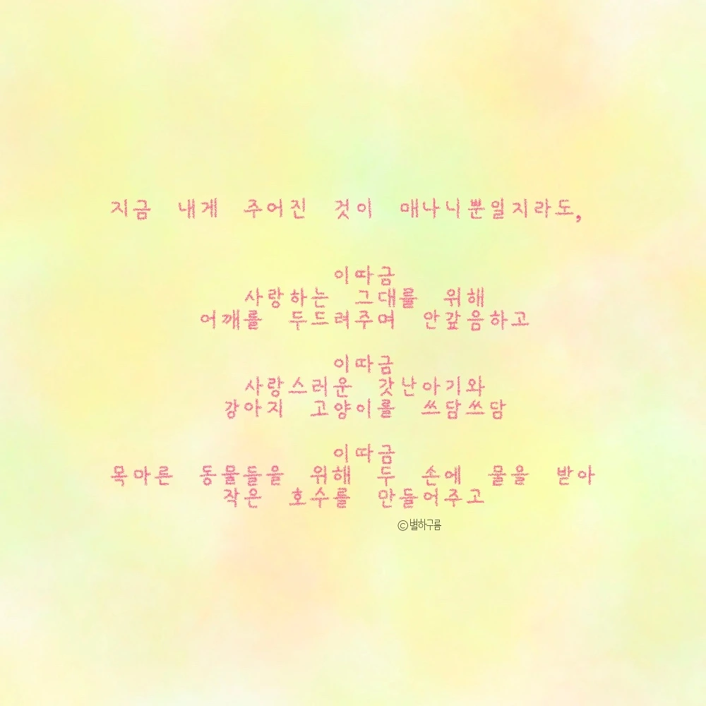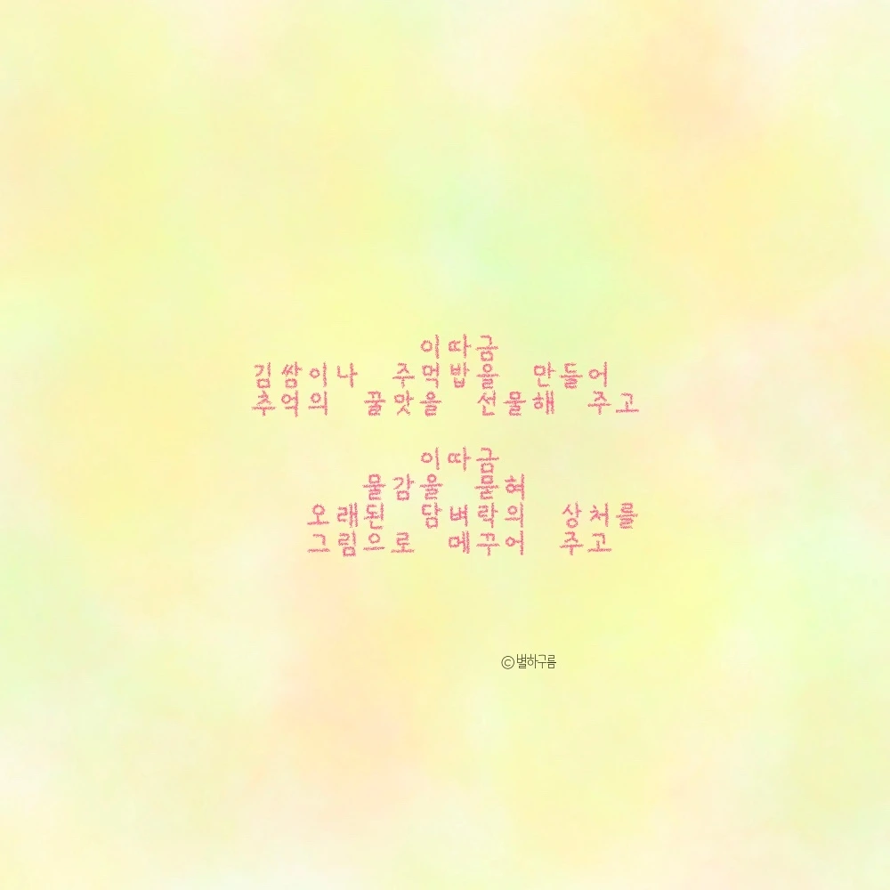 '순우리말을 담은 글을 그리다', 포실한 글과 그림이 여러분들에게 잠시나마 산듯한 휴식처럼 다가가길 바라는 마음에서 창작합니다. 항상 감사드립니다.