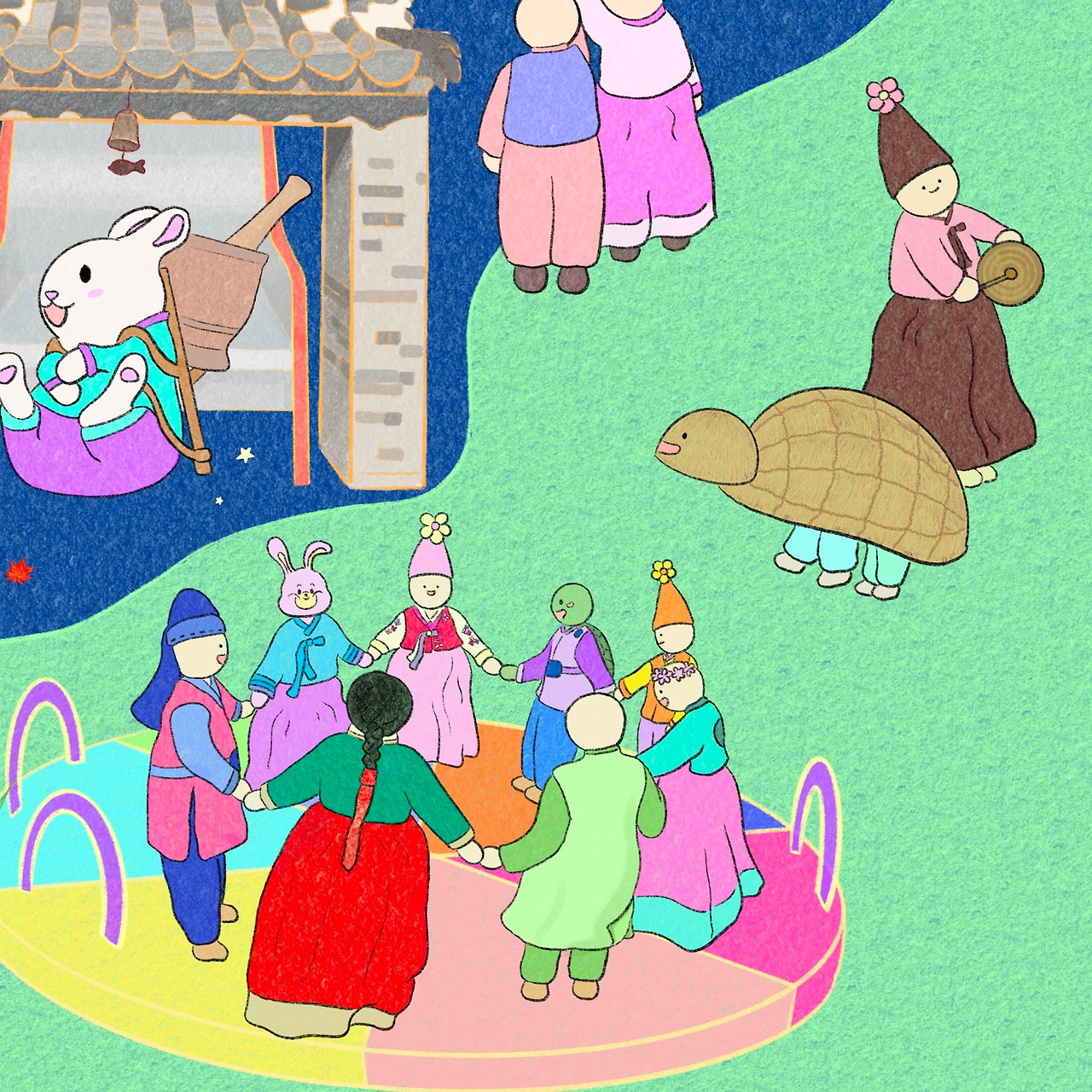 '거북놀이'는 한가윗날에 수수잎으로 거북 모양을 만들어 쓰고 집집마다 돌아다니며 노는 민속놀이로 마을 주민들의 무병장수, 행운, 안녕, 풍년 등을 기원하는 성격을 지닌다고 합니다.