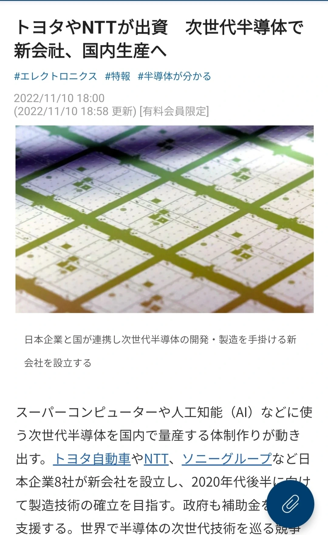 도요타 덴소 소니 ntt등의 회사가 차세대 반도체 를 위한 회사를 설립한다고.
