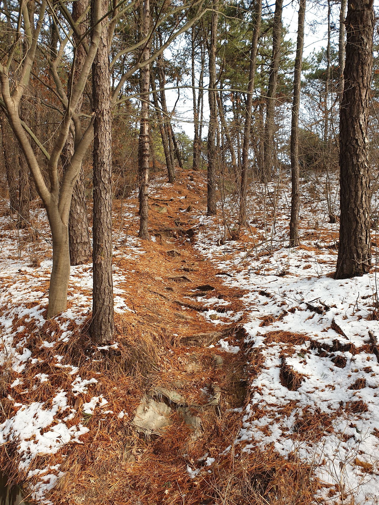 내가 사는 아파트는 비봉산 기슭과 접해있다. 비봉산은 산 정상이 227.8m의 그리 높지 않은 산이지만 아파트의 주민들에게 그 산은 일종의 체육시설이자 공원이고 공기청정기이기도 하다. 헬스장이 문 닫고 나서 나는 다시 등산을 시작했다. 등반이라고 하지만 가벼운 옷차림에 운동화, 스틱 한 개, 허리 가방에 든 휴대전화, 물병, 수건이 전부다. 오르는데 50분 내려오는데 40분, 그리고 휴식 10분, 대략 1시간 40분 정도가 소요된다.