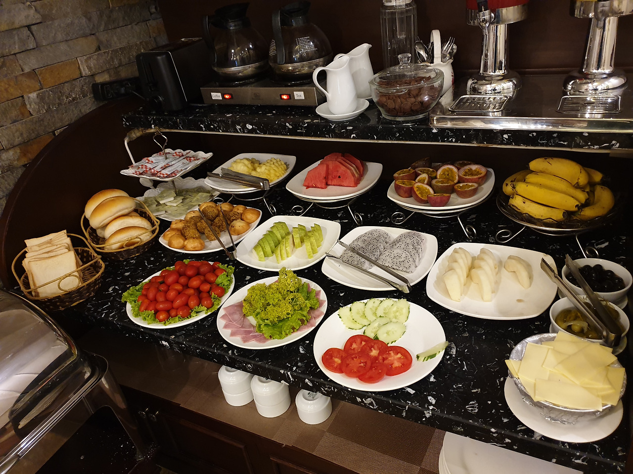 어제 현지 여행사에서는 8시 45분쯤 호텔로 픽업하러 올 거라고 했는데 한 시간 빨리 왔다. 일찍 자고 일찍 일어난 새 나라의 늙은이(?)라서 다행이다. 6시에 눈이 떠진 후 7시에 아침 식사를 했다. 작은 호텔의 식사라서 꼭 기대만큼의 음식이다. 볶음밥, 육가공품 서너 가지 그리고 과일들… 소고기 쌀국수를 시켜서 같이 먹었다. 먹다 보니 그래도 맛은 좋다. 빵, 밥, 국수, 과일까지 평소 아침을 먹지 않는 나에게는 열량 과다일 것이다. 어차피 오늘 소비할 열량도 많은데 어쩌랴.