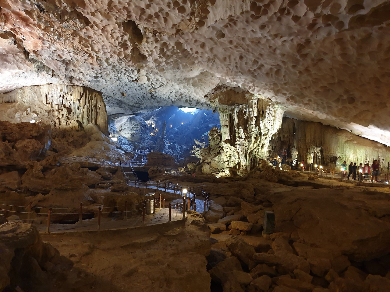 배는 승솟섬에 정박해 카르스트 지형의 동굴을 탐사했다. 그저 작을 줄 알았더니 규모가 꽤 크고 예전 중국 곤명에서 본 비슷한 유형의 동굴과는 달리, 최대한 자연 그대로의 모습을 보여주기 위해 색색의 빛깔로 치장하지 않은 것이 마음에 든다. 한국에서 준비해온 플래시 기능까지 있는 셀프 카메라 봉이 제 기능을 발휘한다.