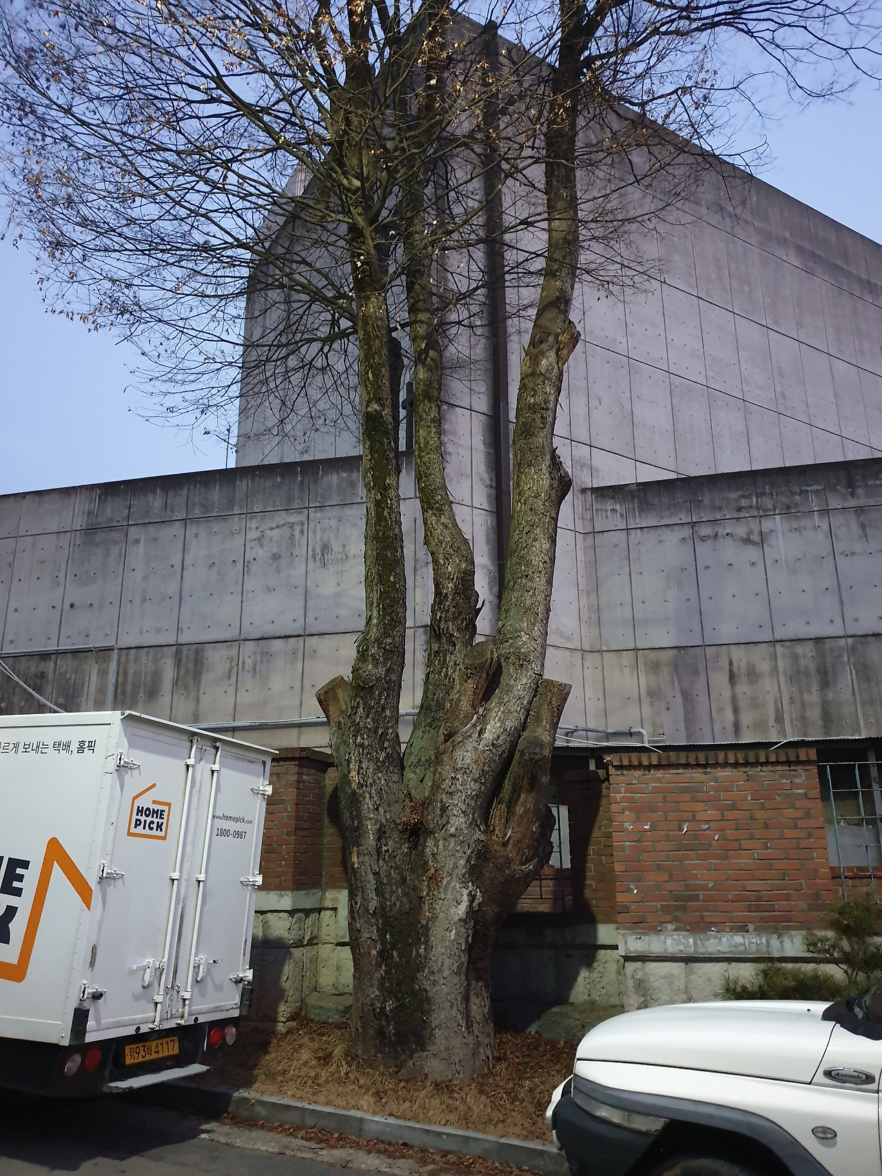 산책길에 만나는 나무들은 모두 흔한 나무들이 아니다. 적어도 2, 3백 년 이상은 살아온 것들이라고 생각한다. 그들은 모두 도심에 서식한다. 시멘트로 봉합된 도로 곁 혹은 건물과 건물 사이에서 살아간다. 고목이라서 그런지 죽은 가지, 부식된 나무둥치가 쉽게 눈에 띈다. 가뜩이나 공해에 약하다는 느티나무인데 서식환경까지 가혹한 탓인지 살아있다는 것이 신기할 따름이다. 아마 올해를 넘기지 못할 나무도 있을는지도 모른다. 그들은 물이 스며들지 못하는 차도와 보도 옆에, 건물과 담장 사이에 위태롭게 서 있다.