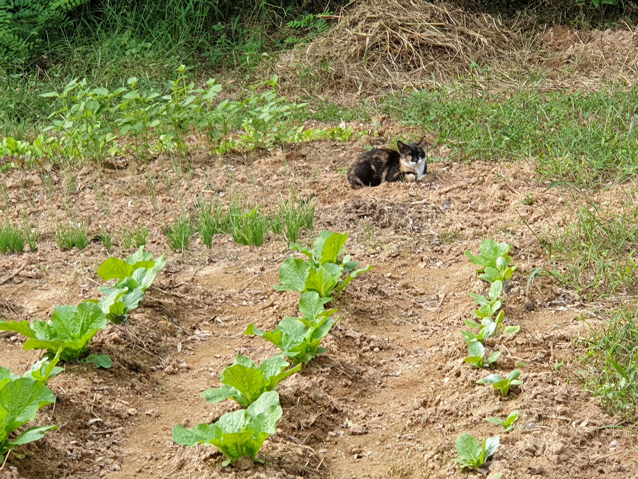 며칠 전보다 채소들이 훨씬 달라져 있다. 어린 모종이었던 싹이 이제는 제법 배추 티가 난다. 30여 포기, 잘만 자란다면 올겨울 김장감으로는 충분할 것이다. 그런데 오늘은 손님인지 파수꾼인지 고양이 한 마리가 밭에 앉아서 배추를 물끄러미 지켜보고 있다. 혹, 아내의 기도에 예수님이 응답하신 것(?)은 아닐까. -하하!