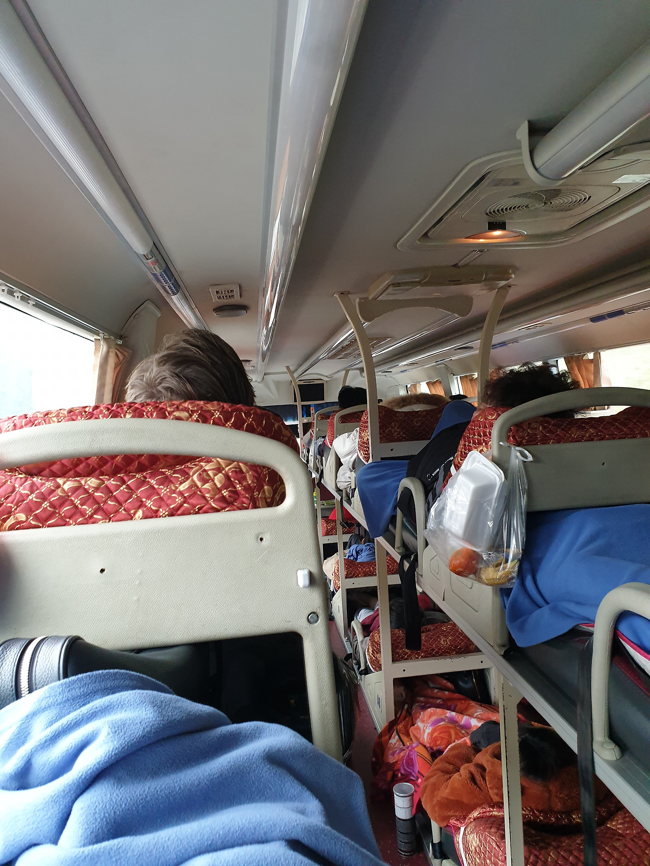 버스표 예약을 호텔에 부탁했더니 43만 동이란다. 우리 돈 2만천 원 정도다. 픽업은 아침 6시 반, 미리 짐을 싸 두고 알람을 5시 30분에 맞춰놓았는데 새벽 두 시에 기상한 것이다. 괜찮다. 침대 버스에서 낮잠을 자면 오히려 덜 지루할 것이다. 안 오는 잠을 오라 오라 간절히 청한다고 올 것인가? 그렇다고 나의 수면제인 막걸리가 냉장고에 들어있는 것도 아니니, 어쩌랴!