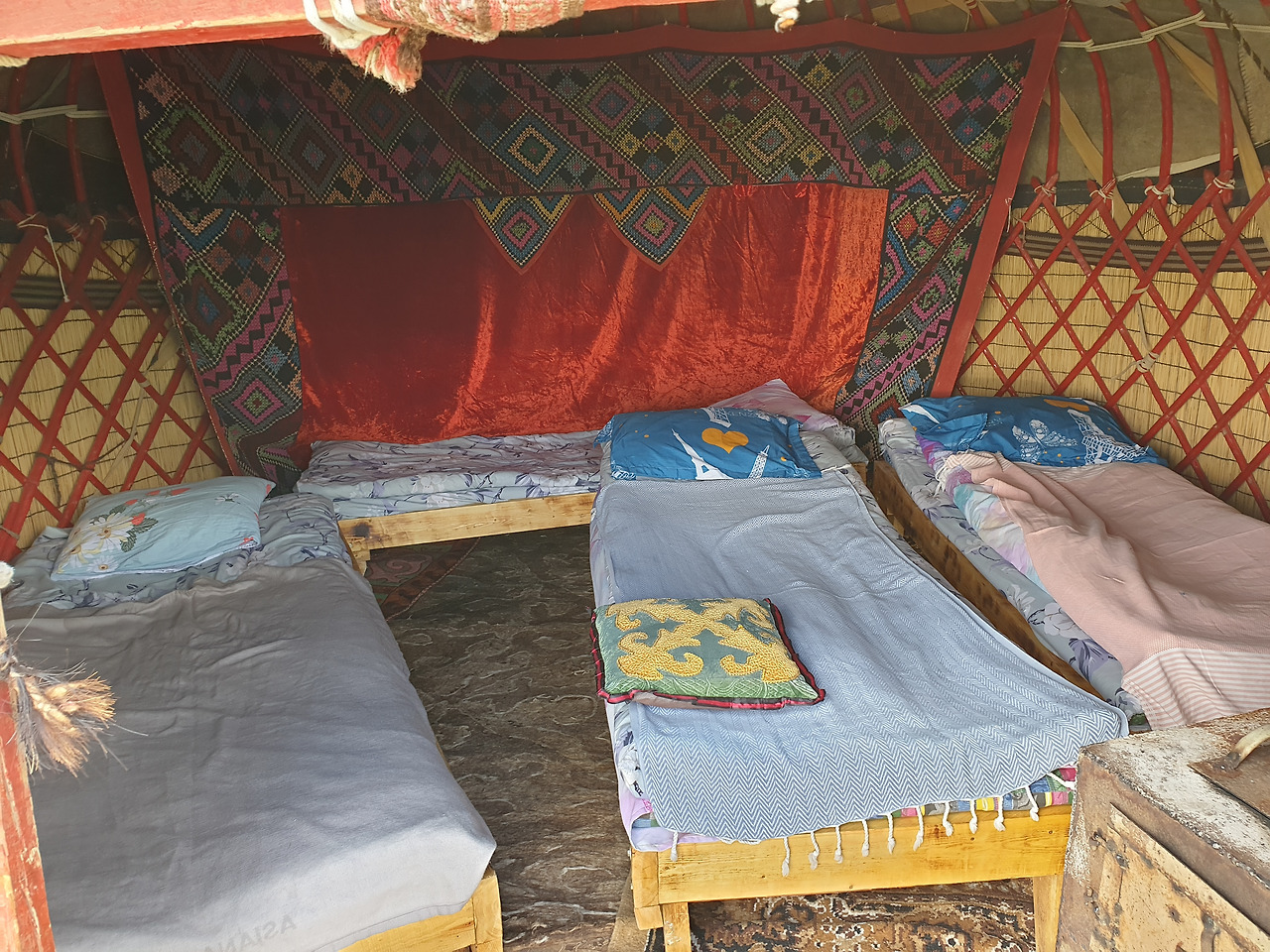 이동 가옥인 유르트 안에는 침대가 놓여 있다. 이 교수와 나는 침대 넷이 놓인 비교적 작은 유르트를 쓰기로 했다. 두 끼의 식사를 포함한 숙박비는 1인당 1,200 솜 우리 돈으로 약 2만 원 정도이다.