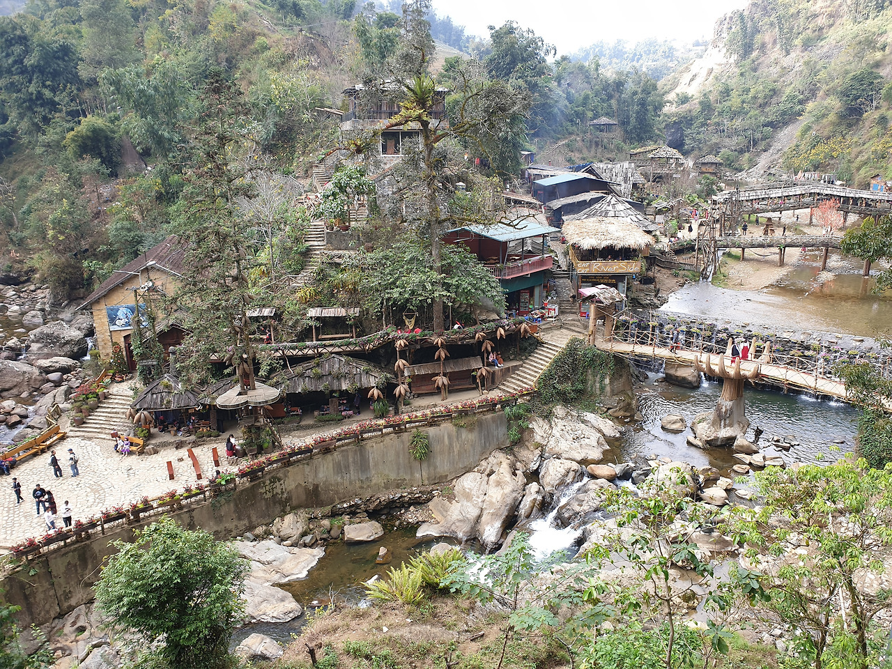 나의 기다림은 헛되지 않았다. 안개의 농도가 어제와는 다르다. 안개(구름)가 지나면 푸른 하늘과 사파의 시내와 산의 가파른 능선도 보인다. 아직 판시판 산은 이마를 구름 속에 숨기고 있지만 산의 허리와 어깨까지 선명하게 보인다. 몇 장의 시내 사진을 찍은 뒤, 인근의 깟깟 마을로 트레킹을 나간다. 소수 민족이 살고 있는 깟깟 마을은 사파와 가까워 여행자들이 빠짐없이 가는 코스로 알려져 있다. 나는 배낭 하나 달랑 메고 사파 시내를 가로질러 계곡 아래쪽으로 내려간다. 길은 자동차 두 대가 간신히 비켜 갈 수 있을 만큼의 넓이로, 시멘트 포장이 되어 있다. 그런데 내가 걷는 계곡 쪽은 아찔한 절벽이다. 빗물이 흘러 질퍽해진 길을 따라가다가 계곡에 접해 있는 카페에서 음료를 시킨다. 깟깟 마을을 조망할 수 있는 이 카페는 그림들이 걸려 있고, 유럽인 여럿도 계곡을 마주하고 풍경을 즐기고 있다. 그곳에 앉아 한 참 생각에 잠겼다. ‘그래 사진만으로 보다가 정말 오기는 왔구나’ 하는 감상에 젖어 있다. 사진보다 실지의 정경이 훨씬 낫다. 사진으로 담아낼 수 없는 색감, 바람, 향기, 분위기 등등… 친지들에게 모두 담아 보내고 싶지만 한계를 절감한다.