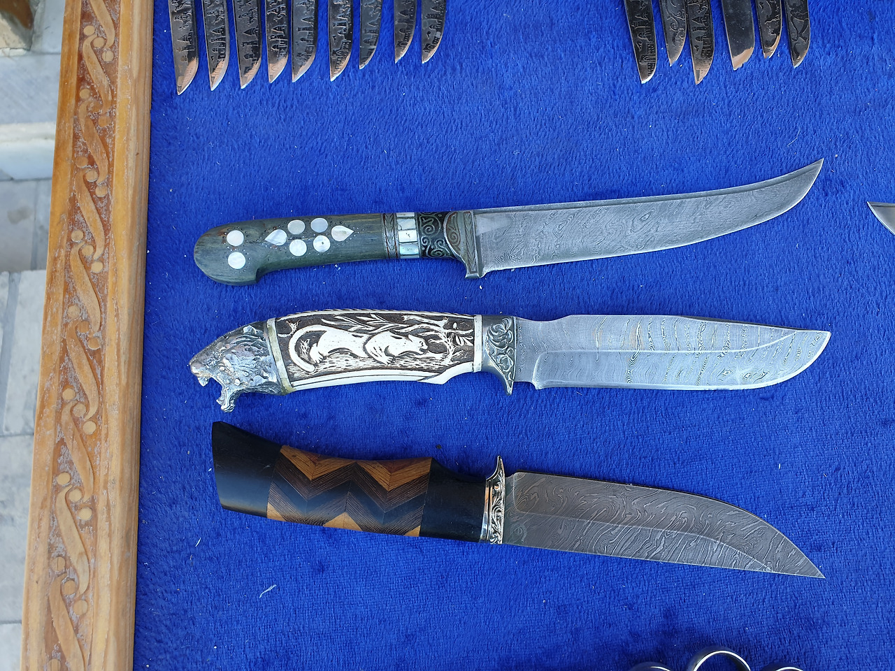 다마스커스 칼은 무려 천년 동안 유럽의 수많은 장인들이 시도했음에도 그 제조법이 비밀에 싸여 있던 신비의 칼이다. 유럽의 제국들이 십자군 원정에 실패했던 원인 중 하나는 단단하고 질긴 이슬람의 칼에 비해 무디고 잘 부러지는 검을 지니고 있었음을 지적하기도 한다. 각기 제품마다 무늬가 다른 이 칼은 근래에 와서 금속학자들의 연구와 장인들의 노력에 의해 재현되어 각종 장식용 칼, 회칼, 식도에까지 응용되고 있지만, 칼의 단단함과 질김이 과거의 칼과 다름없는지는 문외한이기에 나는 모른다. 다만 칼에 새겨진 무늬가 아름답기에 적잖은 달러를 지불하고 구입한 것이다. 그나마 우리가 지나쳤던 다마스커스 칼만 전문으로 파는 가게보다 굼바스의 기념품 상점에서 절반이나 싸게 구입했지만, 장식적인 모양이나 무늬는 크게 다를 것이 없었다.