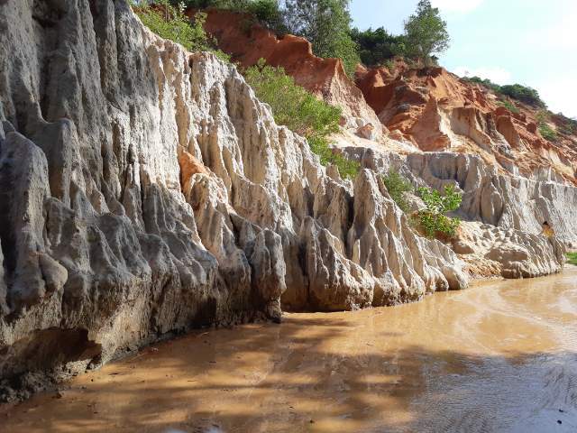 가이드가 요정의 샘 입구까지 데려다주고 40분을 줄 테니 다녀오란다. 요정의 샘은 침식된 지형을 따라 흐르는 시냇물을 말한다. 아주 작은 입자로 된 모래톱을 흐르는 시냇물을 따라 우리는 걷는다. 신발은 벗고 맨발로 말이다. 중국, 유럽 관광객들도 우리처럼 한 손에는 신발을 한 손에는 휴대전화를 들고 걸어간다. 그리고 오랜 시간 동안 침식된 지대가 만들어낸 풍경들을, 나무와 풀과 숲을 만난다. 엊그제 호찌민에서 산 짝퉁 아디다스 모자와 어제 무이네에서 산 리넨 옷을 입고, 배낭을 메고 모래 위를 걷는다.