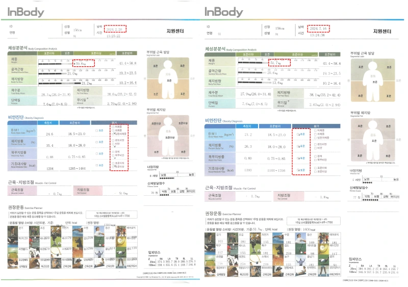 부끄럽기도 하고 자랑스럽기도 한 나의 인바디 전격 공개! 비만진단 평가가 '비만'에서 '표준'으로 내려간 것이 가장 만족스러운 부분이다.