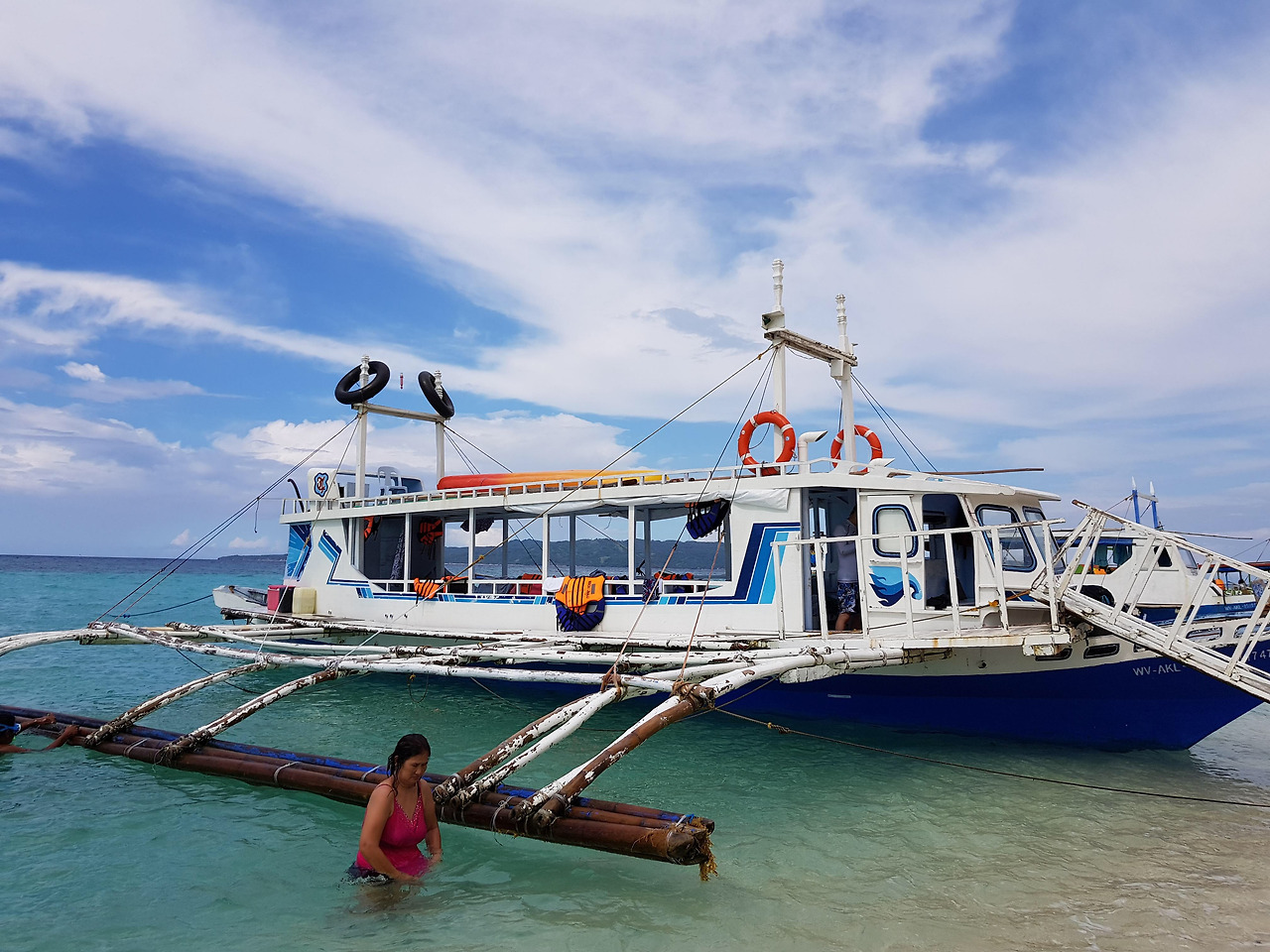 날씨와는 무관하게 많은 사람들이 호핑투어 장소에서 기다리고 있었다. 사람이 꽤나 많아서 두 개의 배로 나눠졌다. 우리는 정신없이 나온 탓에 챙겨 와야 할 준비물을 제대로 챙기지 못했다. 필수 준비물은 비치타월, 선크림인데 이 두 가지를 놓고 와서 곤혹스러웠다. 비가 오던 터라 물속에 들어갔다 나오면 추웠는데, 이때 비치타월로 몸을 감싸줘야 한다. 선크림은 보라카이에선 항상 필수다. 가방에 있던 샘플용 선크림으로 겨우 화상 환자 신세는 면할 수 있었다.