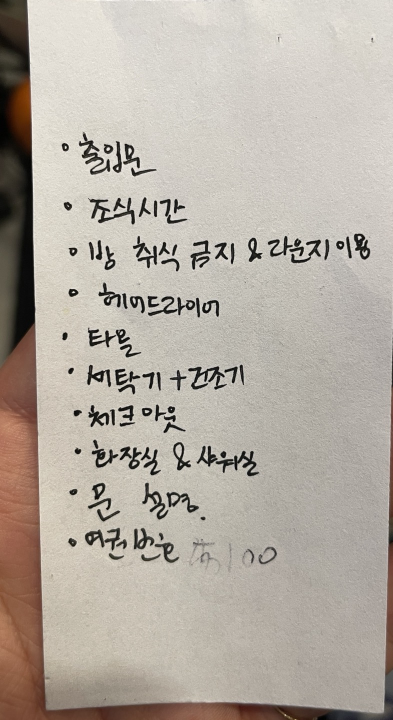 사장님: 우리 게하가 외국인들이 많이 사용하는 어플에 등록되어 있어서인지 외국인 손님이 더러 있어요. 영어... 괜찮으세요?