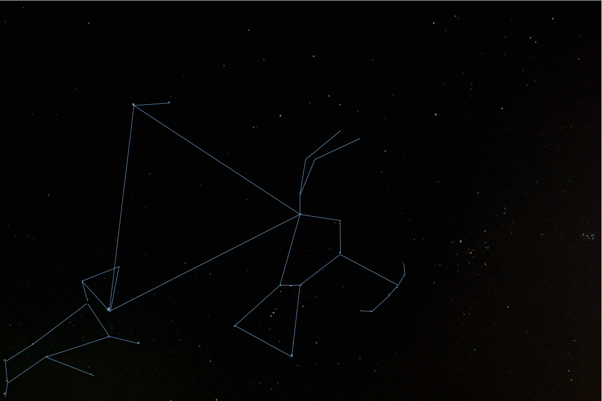 그때 이후로 지금까지 내가 찍은 사진들 중에 별이 우연히 찍힌 사진들을 찾아보았습니다. 이게 어떤 별자리 인지도 모르고 배경과 함께 찍힌 별 사진들이 어떤 별자리들인지 찾아보는 일을 해보게 되었죠. 어떤 사진들은 진짜 내가 못 알아볼 정도로 별들이 찍혀있는 사진들도 있었지만, 어떤 사진들에서는 눈에 익숙한 별자리들이 보였습니다. 바로 오리온자리였죠. 제가 처음으로 알게 되고 찍어보게 된 별자리이다 보니 특징들이 머릿속에 입력되어있었고 실제로 별자리들 중에서도 특이한 특징들을 갖고 있다 보니 더 쉽게 찾아졌습니다. 그 외에도 큰 개자리도 눈에 띄었습니다. 그렇게 나의 별자리 여행은 시작되었습니다.