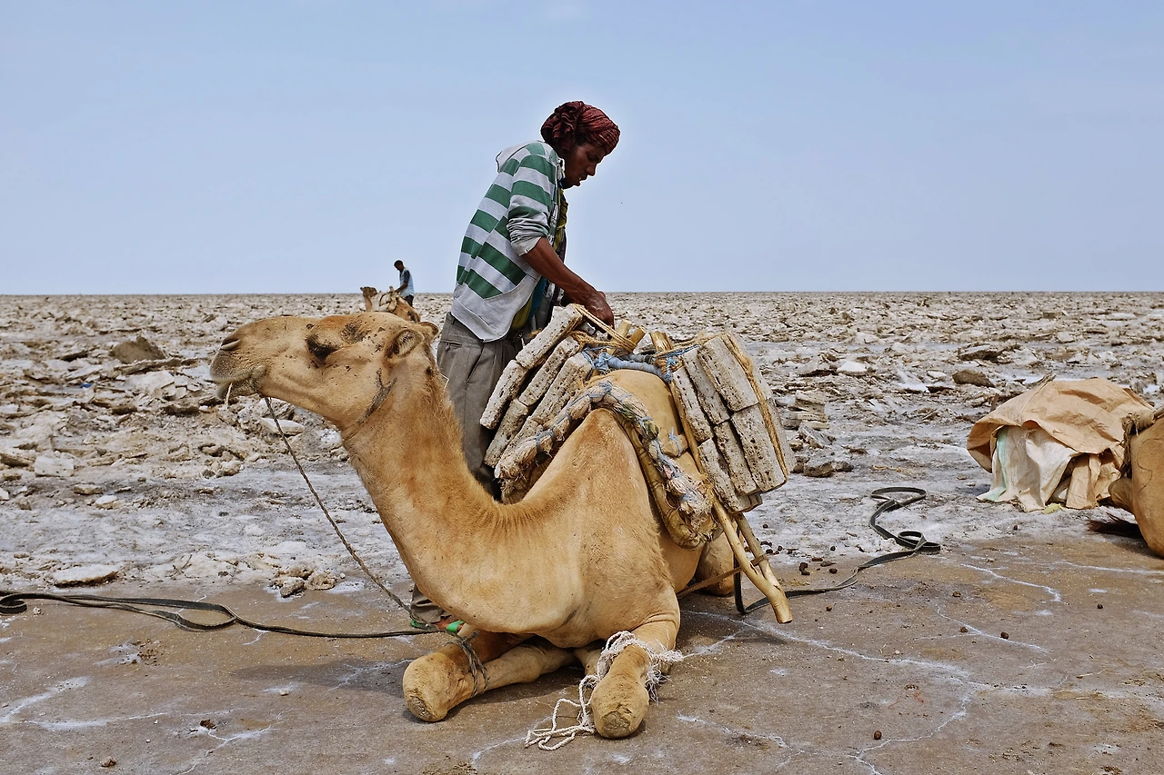 먼 옛날 바다였던 이 곳은, 화산 활동과 뜨거운 햇빛에 바닷물이 말라버리는 대신 백만 톤이 넘는 소금만 남았다. 지역 주민들은 불행인지 다행인지, 한낮에는 60도가 넘는 이 뜨거운 곳에서 소금을 채취하며 살아가고 있다. 정부가 자연 보전을 이유로 차량 이용을 금지하는 바람에 주민들은 예나 지금이나 낙타와 당나귀 행렬을 이끌고 더위 속을 오가며 소금을 캔다. 그렇다면 '쌩쌩' 다니는 여행사 지프차들은 뭘까. 돈 없는 주민보다 돈 많은 이방인을 반기는 건 어디나 마찬가지인가 보다.