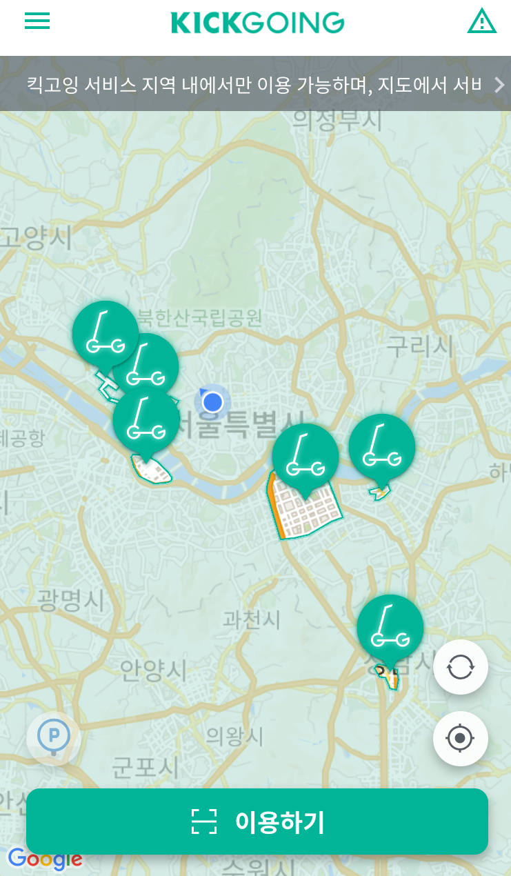 내가 어제 이용한 ‘킥고잉’의 경우 강남구, 마포구, 송파구, 여의도, 분당구, 부산 센텀시티, 상암동 DMC에서만 이용 가능하다. 종로구, 중구도 필요할 것 같다는 생각이 들었다. 일몰 이후에는 이용 불가능한 것은 안전을 위한 당연한 결정이라는 생각이 들었다.