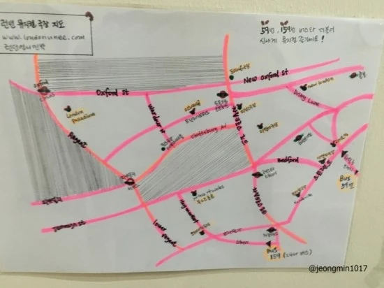 매니저는 런던언니 생활에 필요한 안내 사항들을 알려줬다. 그리고 사장님이 직접 그리신 지도가 있으니 참고하라는 말도 덧붙였다.