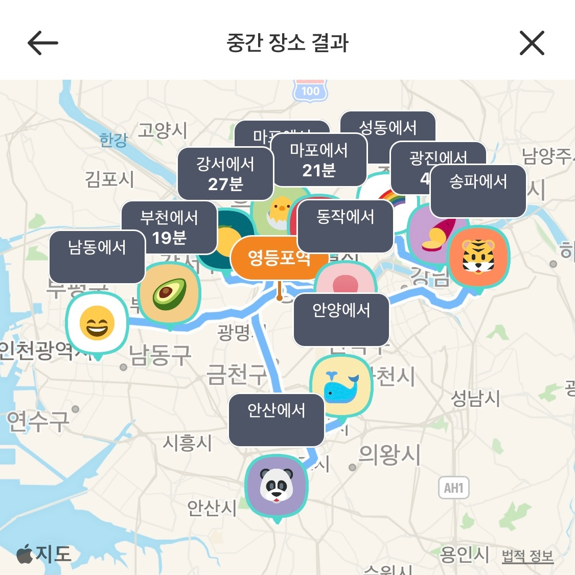 어쩌다 보니 식당에 여성 살러들만 다 모이게 되었다. 식탁에 둘러앉아 6주살이 프로그램이 끝나면 어디서 뒤풀이를 할 것인가에 대해 이야기를 나눴다. 현이 여러 지역의 중간 장소를 찾아주는 어플이 있다고 말해주었다. 어플로 찾아본 결과 수도권에 사는 살러는 영등포역에서 만나게 될 것 같다. 남해에 있을 아보, 석, 훈과 같이 만날 때는 전주에서 만나기로 했다.